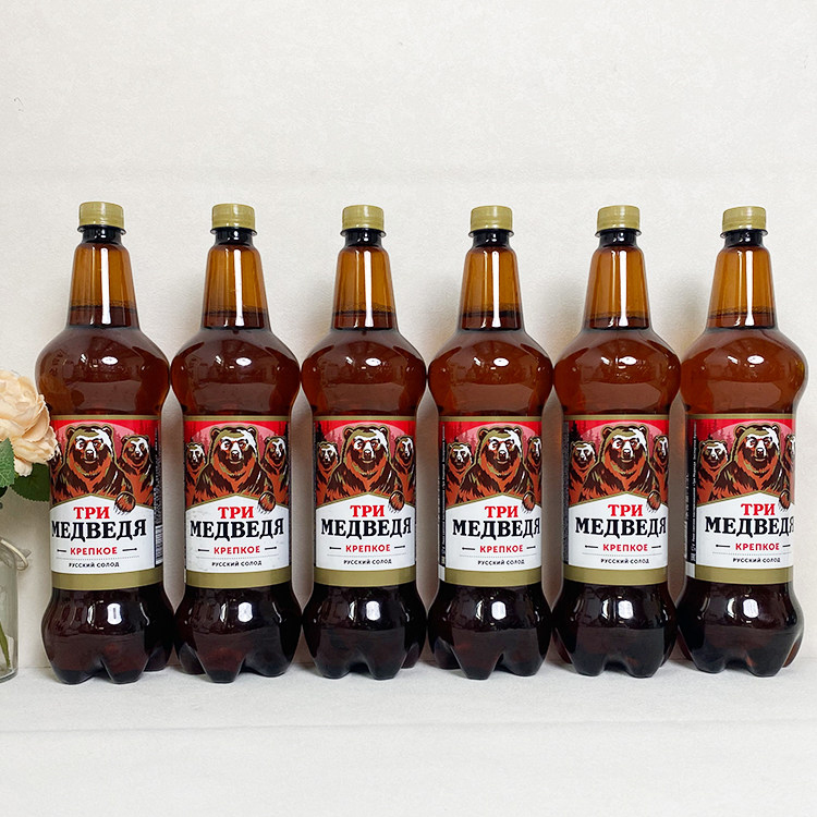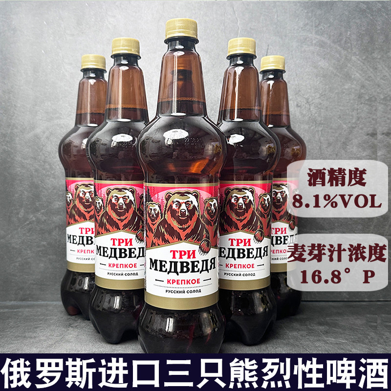 俄罗斯进口高度烈性啤酒原麦汁16.8三只熊大麦黄啤酒特价1.2升/桶