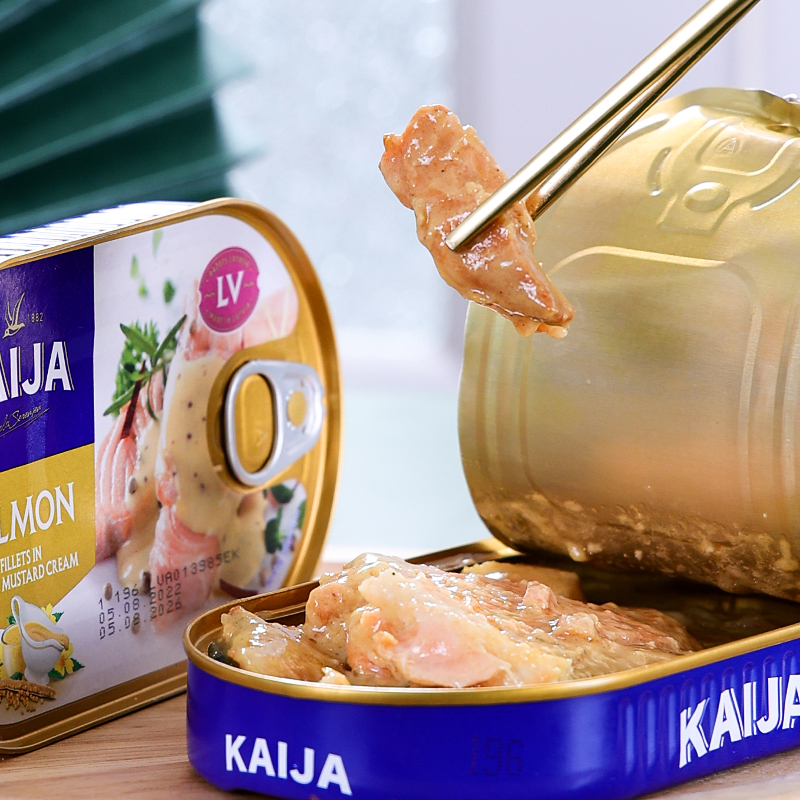进口芥末三文鱼罐头海鲜即食下饭菜KAIJA牌拉脱维亚原装特产食品